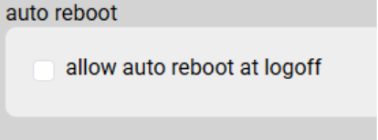 - Auto Reboot: When the session time expires or the user initiates a logoff, this option will automatically restart the computer. Useful when using a restart to restore software.
