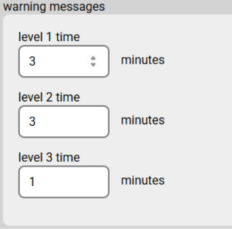 - Warning message: Number of minutes before the end of the session where the client warns the user that they will be logged off.